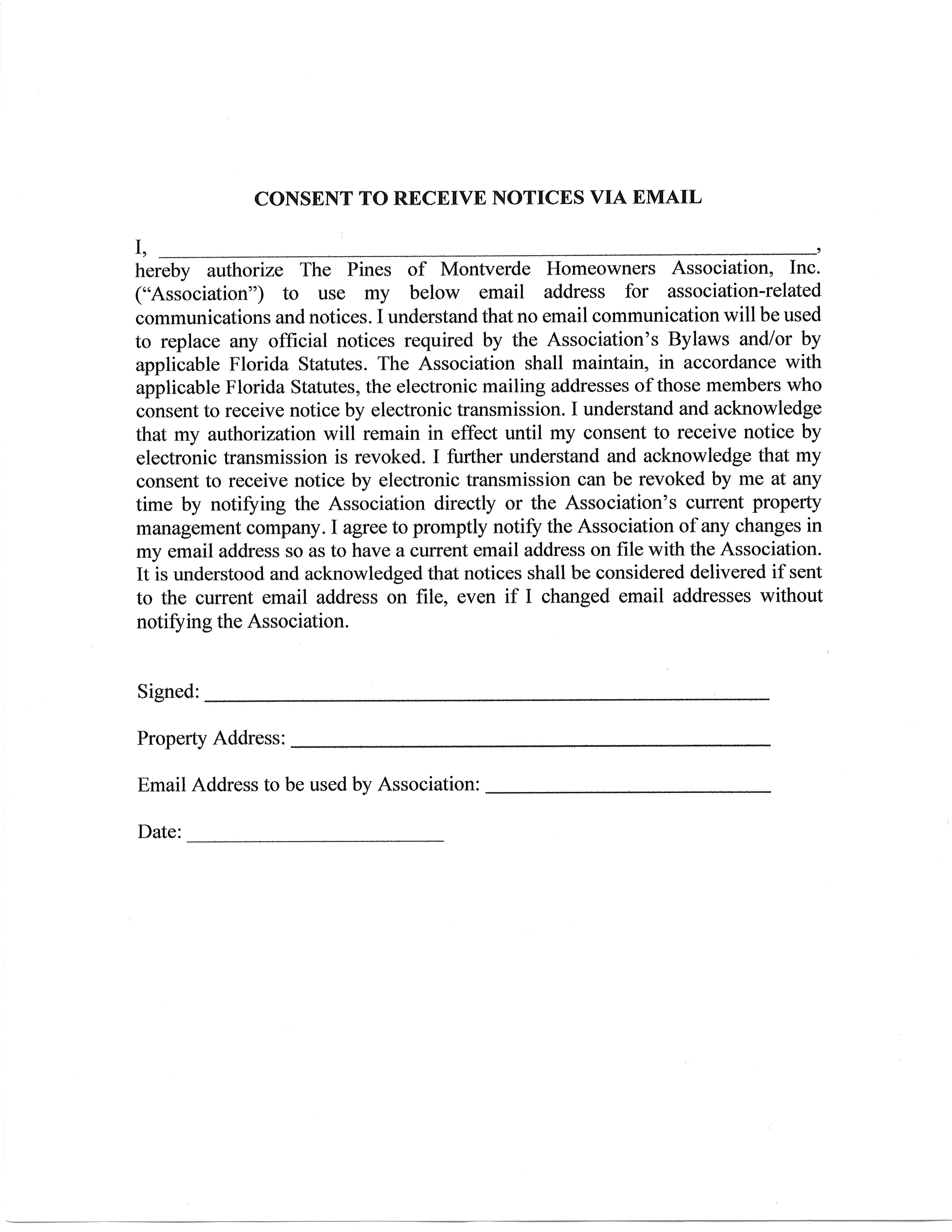 Consent to Receive Electronic Notices via Email